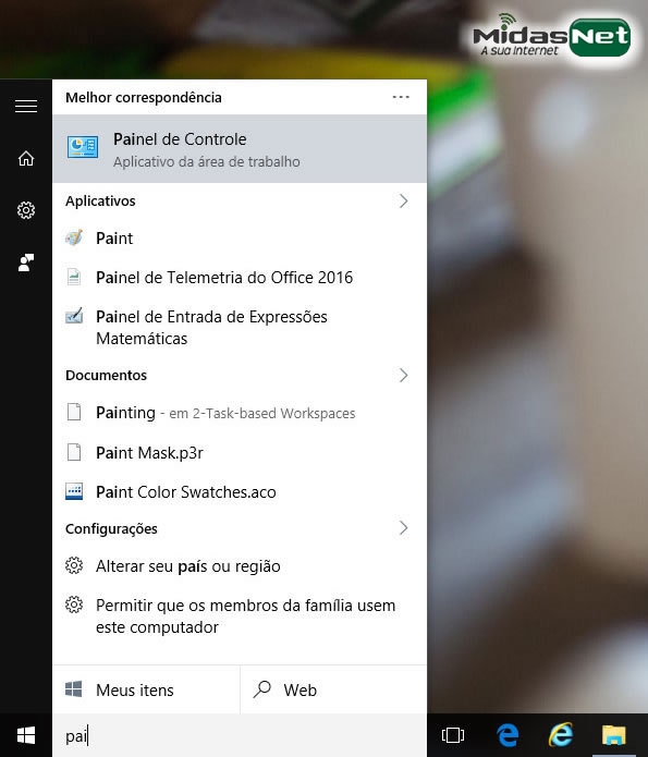 Com a Área de Trabalho aberta, se diriga até o Menu Iniciar e localize o Painel de Controle