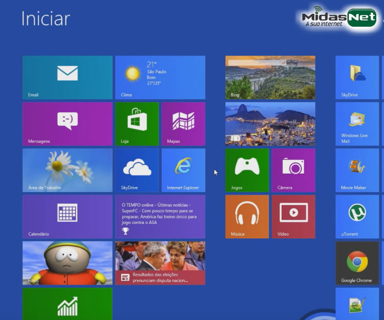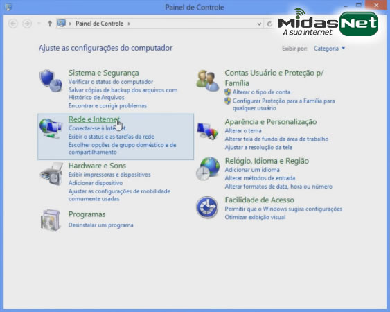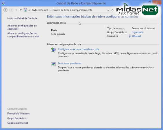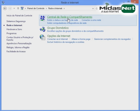 nesta próxima tela, clique na opção Central de Rede e Compartilhamento