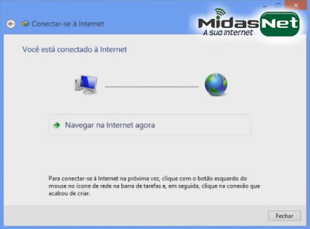 se este estiver correto e houver a conexão, será exibida a tela acima, pronto, sua conexão está ativa, deve clicar em Fechar na sequência.