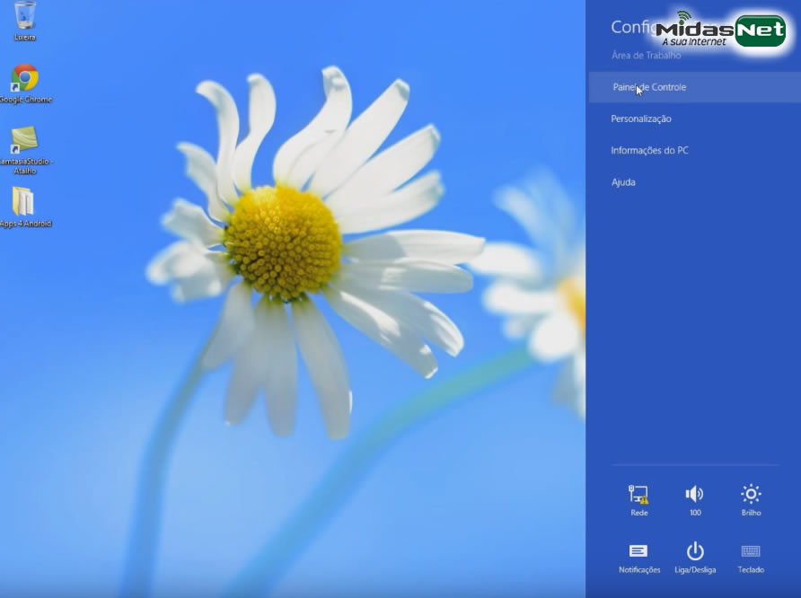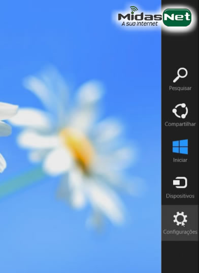 na sequência, já com o Área de Trabalho aberta, posicione no menu lateral direito, localizando Configurações