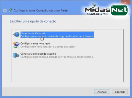 na tela adicional exibida, localize e clique na opção Conectar-se à Internet e em seguida, clique no botão Avançar